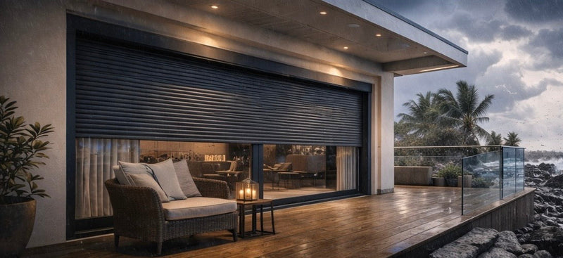 For modern homes or those in high-risk coastal storm zones, our Qompact Roller Shutters offer cutting-edge protection. Their unique design features a tightly coiling slat system, allowing the shutters to roll neatly into a compact box without bulky housing. Built for strength and smooth operation, Qompact shutters provide exceptional defence against hurricanes, intruders, and harsh weather while improving energy efficiency and noise reduction. Available in a range of finishes, they deliver powerful performance with sleek, contemporary appeal.
